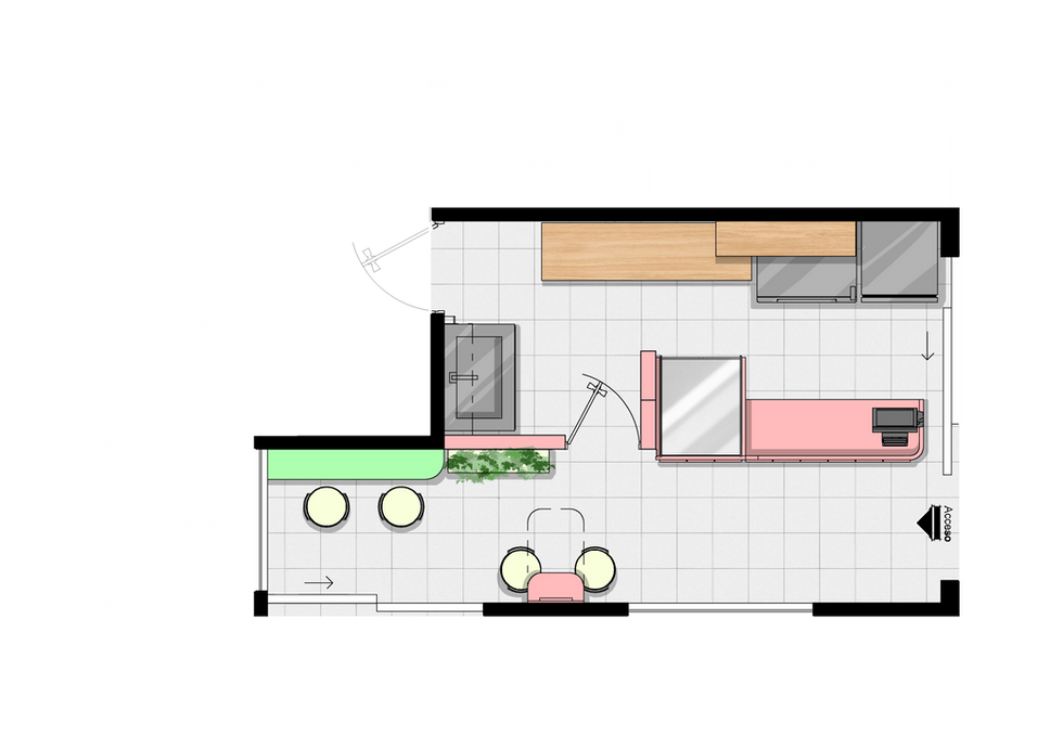 Shakes & Food es una cafetería exprés que ofrece opciones de comida desde almuerzos hasta postres y batidos. Ubicada en el segundo nivel de Orthoestetic center. Cuenta con aproximadamente 13m2. El cliente buscaba optimizar el espacio disponible y brindar un espacio para que los pacientes del lugar puedan disfrutar su comida y bebidas.